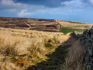 He looked like a gamekeeper as he approached with his 12 bore gun, but no dog. I thought I was in trouble but I’m sure it’s open access land. His concern was that I was lost so after reassuring him that I knew exactly where I was we chatted then continued our separate ways. Over another fence I soon came to the Byers Pike summit Trig Post. |