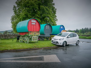 There were several caravans on the outskirts of Alston but all were parked up on the grass verges with no signs of anybody being up. I continued along the A686 to cross the River Allen. There where several horse drawn Gypsy caravans approaching from the other direction. I reached Allendale in pouring rain. |