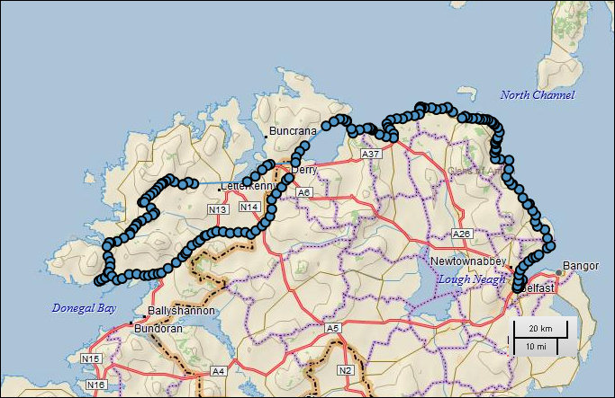 Ireland cycle ride: Derry, Killybegs, Foyle Ferry, Giant's Causeway, Belfast. Fri 13 Jun - Thu 19 Jun 2014