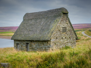 I followed the path just above the reservoir to one of the inlets at Shaws Dyke and Grimwith High Laith where an old barn had been refurbished by re-thatching the roof. It looked quite nice but was locked and didn’t seem to serve any purpose. |