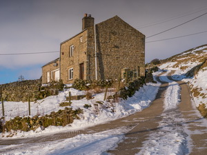 Across Peat Moor Green I descended though the snow to the hamlet of Booze and its collection of separate houses and farms. I followed the track north above Slei Gill. |