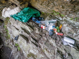 The flattish area is called Houndshope cove and I camped here many years ago. I took the faint path up towards the east face of Dove Crag. The rocky scramble soon gave way to a short path and a grassy area in front of the cave. |
