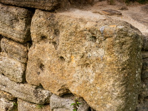 gas pipeline marker and nearby a stone circle of rubble. At first it