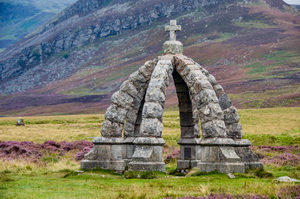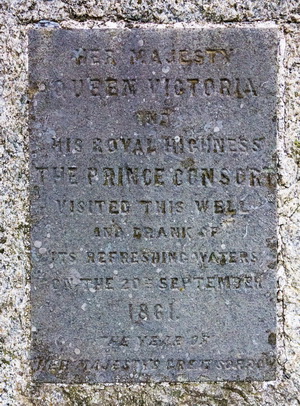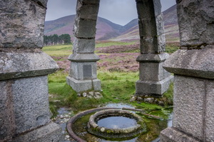 80375 It was still dark when I woke at 5 a.m. and after a quick coffee and some breakfast I set off along the road and up to the right to pass the House of Mark. The track continued in a northwest Direction up Glen Mark. It was now coming light but unfortunately still overcast with cloud. After 2 miles I could see the Queen’s Well Monument ahead which is a stone structure erected in 1866 to commemorate the visit of Queen Victoria as she passed on one of her tours. |