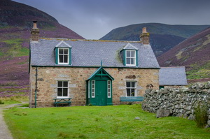 I left the spring to continue up the Glen to the isolated building of Glenmark which was empty but is available for rent as a holiday cottage. The track was now a vehicle track for the shooting parties. |