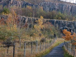 The extent can still be seen by cliffs in the distance. Many kinds of stone products were produced including setts to pave the streets of Newcastle, Manchester, Liverpool and Carlisle. My map showed the site of the Turret 45b on the wall but there was no sign of it now as the quarry had cut it away. However it was excavated in 1883 before being obliterated. |