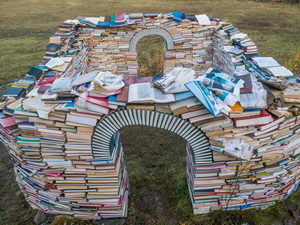 recycled books destined for pulping or landfill — once the installation