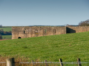 65882 The drive along the M6 was a mix of fog and clear views. I reached a small car park on the B6318 just off the busy A69 trunk road. It was an odd shape and not good to get many cars in. At least it was free. I followed a path to cross the railway then along the bank of Tipalt Burn. In front of me was the impressive ruin of Thirlwall Castle. |