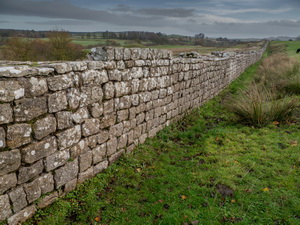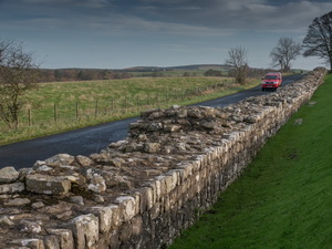 Before the priory ruins I left the road to head along an unmarked path across the fields to enter the Priory graveyard by a public footpath. The grounds of the priory were closed as they only open at weekends this time of year. Fortunately the church was open so I could have a short look inside. A sign said it was £1 to take photographs. I find this a strange and disagreeable charge as a photograph is hardly going to cause wear and tear. I left to follow a track heading north to re-join the line of Hadrian’s Wall at Haytongate where the path headed steeply up and over Hare Hill. On the descent back to the road I reached the short stretch of wall in a fenced off area. A sign says this was thought to be the highest remaining stretch of wall but then says it was largely rebuilt in the 19th century. It still looks impressive at about 3m high. I soon reached the road then a short walk back to the car. |