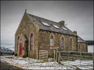 | The path climbed to where I reached start of a minor road which I followed to Bank Top and Brumwell Street. Continuing on I left the road to cross over East Moor Riggs through the snow and picked up a track at Thompson’s House. The track was now easy to follow and I stopped briefly to have a look at an old church with Ebenezer Primitive Methodist Chapel 1889 on the datestone. It is currently being converted to a house. Further along the track I came to the main the road near Duffton Moss and another church but this one is still a church and the date stone says Wesleyan Chapel Erected 1867. It was then a short walk along the road back to the car park and my car. |