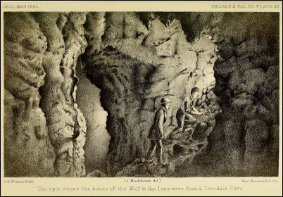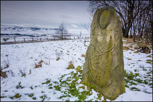| I was able to follow the track through the snow until I came to my first objective which was to investigate some caves shown on the map. I turned left and headed through the snow to cliff face of High Hurth Edge. It was plastered in snow so I climbed up to investigate. I found a couple of cave entrances but didn’t go far in. In the area are High Hurth Caves, where the bones of a prehistoric man were discovered in 1887. It is hard to say if the cave entrances I was looking are are the same cave. |