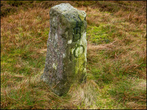 | The inscription on one side seemed to read N 10. I was on the border between Cumbria and Durham but stayed on the Cumbria side. I following the path and left it by turning south to head along Round Hill Syke where I soon came to an old stone sheep shelter. It was windy so I used the shelter to have my sandwiches. |