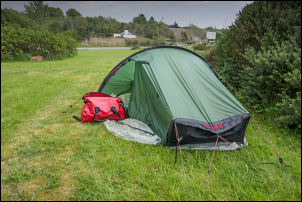 tent and outside. All the grass was sodden with dew so I had to be