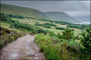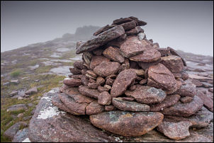 | I set off up the steep side but was soon in cloud and couldn’t see anything. I continued to the summit ridge then along to the summit cairn at 635m. I could tell that in clear weeatehr this would be a spectacular climb with fantastic views of the peninsula. I continued round the ridge of the corrie and descended down to Coire Dearg where the ground was very wet. |