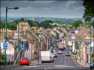 looking Scottish town with a long straight main street.