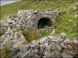 | I had a look inside then continued along the track where I came to a mine entrance with a date stone of 1870 above the keystone. It was in good condition and a metal grill gate inside didn’t seem to be locked. The building was probably connected with this mine as the map shows another mine further up the valley but I didn’t go up to investigate. |