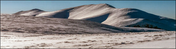 | This happened at every step. My next objective was the summit of Knott but the going was so hard I decided to head west instead towards Great Sca Fell. Occasionally I found some snow that would take my weight and the walking was easy. The sky was clear and the views made up for the misery of getting through the snow. I was hoping that when I reached the main track on Little Sca Fell I would be able to follow the tracks made by previous walkers. |