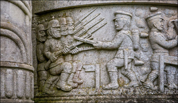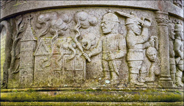 carvings depicting World War 1 and various atrocities committed by