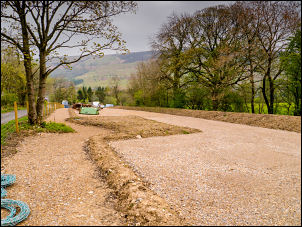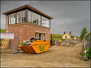 | He didn't understand that I made a joke. In Slaggyford I walked up the track to the west to the site of the old railway station. I was pleasantly surprised to see that the rebuilding of the Railway from Alston had now reached this location. The station platform was being rebuilt and a brand new level crossing building had been constructed. Further up the lane on the left was a large new car parking area. |