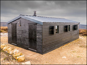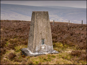 | I continued along the lane and descended to the river and over the stone bridge at Knar. I walked through the farmyard and turn right to follow a stoned track steeply up the fellside. Near the summit of Black Hill I left the track to visit the trig post. I returned to the track and continued to a relatively new wooden shooting hut. On the way was a four wheel drive vehicle was there and a ranger doing some inspections. |