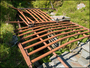 | I headed across Caudale Moor two Caudale Head where I had an excellent view down into the steep sided valley. Then I descended easily down Rough Edge to a point above the disused Caudale Slate Quarry ware I descended the grassy slope into the old quarry workings. I was last here 10 years ago and commented on an old shaft which was protected by some old gratings. It was exactly as I saw it the last time and I threw a few stones down to hear them bouncing off the shaft side far below. |