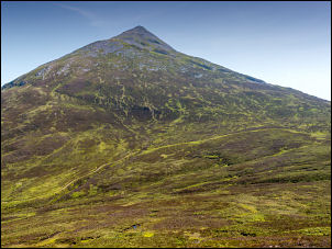 | I descended down to the Blar na Feadaig bothy but didn’t go inside as I’ve visited it before. I then started my climb up to Schiehallion summit along a pathless route I’ve used before. Eventually I came to a faint path up the west ridge which I followed upwards. Just below the summit I collected a few small quartzite stones. Above me I could see several people on the summit. |