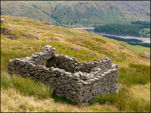 ![]() Haweswater Reservoir and the ruins of Grove Brae Farm in the foreground |