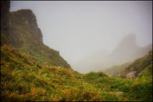 | I was now in thick cloud and couldn't see much in front so I continued to the shelter cairn on the summit. Although I had a westerly wind at my back it wasn't a problem. I continued over the top and down to the saddle just before Crag Hill. Here I turned left and followed down the valley in very calm but cloudy conditions to Coledale Hause. Even though there were no views I decided to continue with my original route over Sand Hill and up to Hopegill Head. |