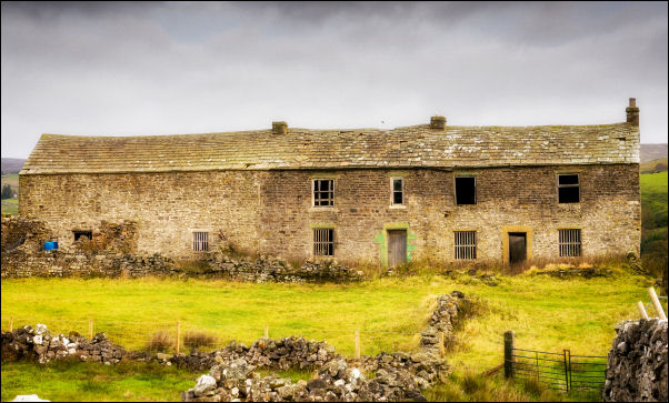 | I continued southeast to the bridge over the River Wear at Wearhead and then right along the narrow lane. A short way along I turned left into the fields heading south towards the property called Low Rigg. I could see it plainly standing out on the horizon and this is where I wanted to revisit as I’d first seen it 5 years ago and wanted to see how it was now. I looked in through a rear door and went inside briefly to inspect some very dilapidated rooms and then up the stairs and back down again. I move around to the south face which is the front of the building to enter the main front door as I had 5 years ago. | |