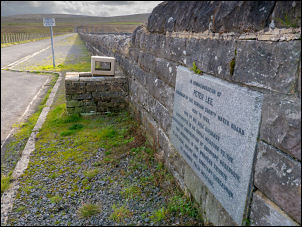 The stone plaque reads: === In Commemoration of Peter Lee, Chairman of the Durham County Water Board 1920 to 1935, who by his able guidance contributed in no small measure to the satisfactory construction of Burnhope Reservoir. This memorial is the workers tribute to his great ability and constant endeavor to promote their welfare. === |