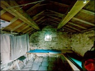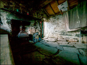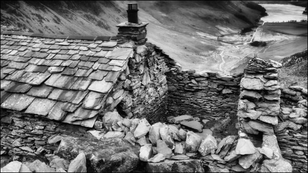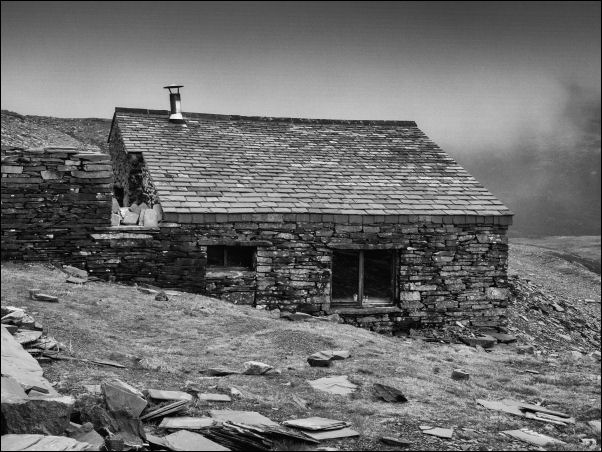 | They said it had been very noisy due to the wind. They left to continue up the mountain and over Haystacks, meanwhile I stayed to photograph the interior and outside of the hut. Instead of following the main path I climbed straight up the steep spoil heap to some stone structures I could see higher up. They were part of the original quarry buildings and I managed to find shelter in one to eat my sandwiches. | |