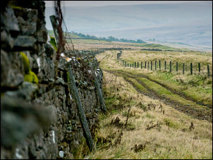 | It descended steeply down by Rowgill Cleugh but unfortunately the surface had been ripped to pieces by vehicles, probably quad bikes and also what looks like motorbike tracks. After the steep descent the track continues for about a mile along a fairly level stretch and although still unsurfaced was not as bad as earlier. It starts to rise up to re-join the main road but before that is a right turn off which was my route. |