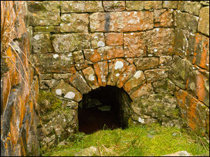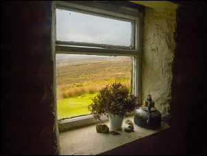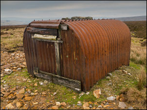 was last worked about 1873. I crossed over the moor to investigate some spoil heaps which seemed to be lead ore spoil as nothing was growing on them. This made walking very easy but soon I was back in to the heather to cross the final stretch of moor to the bothy where I stopped to take some internal photographs and also have my lunch. |