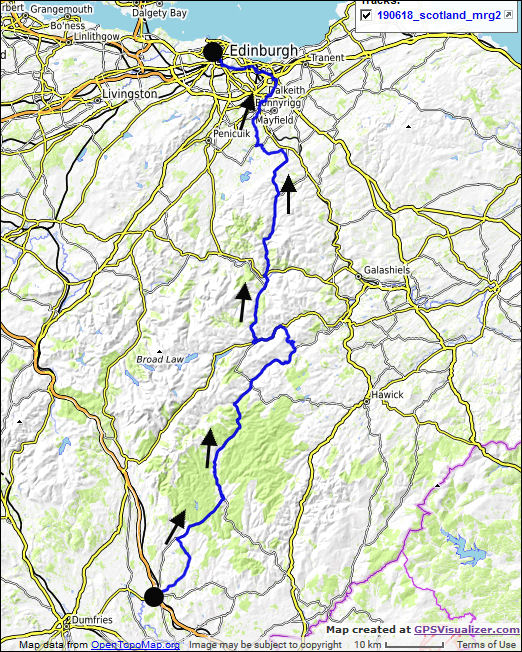 Lockerbie, Eskdalemuir, Kirkhope, Innerleithen, Bonnyrigg, Edinburgh, Scotland..(3½ day bike ride). Sat 15 Jun - Tue 18 Jun 2019