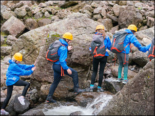 | As I got lower I noticed a few parties of school children on an adventure trip up the Gill. They all had hard hats on and bright over clothes. Farther down some were climbing out of the ghyll from a point below a waterfall. A short way down I reach the main path back to the car park at New Dungeon Ghyll. |