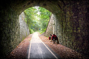 Valley cycleway where it enters the old railway tunnel under the