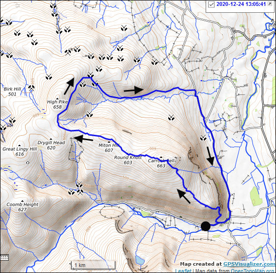 Mosedale, Carrock Fell, Round Knott, Driggith Mine, Willywood Well, Carrock Beck, Cumbria. Tue 24 Dec 2020