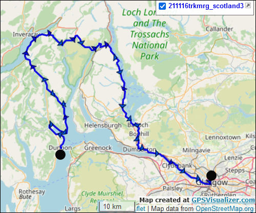 Dunoon, Ardentinny, Glen Finart, Hell's Glen, Rest and be Thankful, Loch Lomond, Balloch, Dumbarton, Glasgow, Scotland.(4 day cycle pack). Sat 13 Feb - Tue 16 Nov 2021