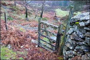 noticed a gate up ahead on the fellside. |