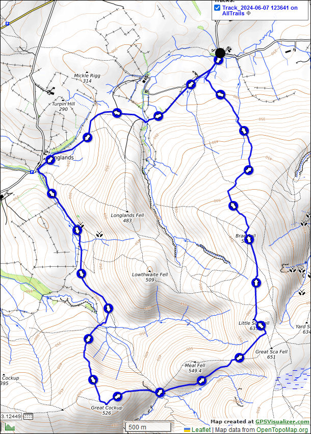 Burblethwaite, Charleton Wath, Longlands, Great Cockup,Trusmadoor, Brae Fell, Willy Knott, Cumbria. Fri 07 Jun 2024
