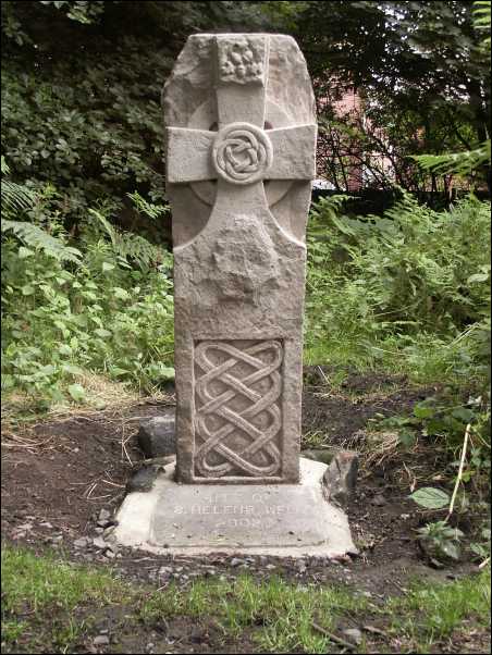 The site of St Helen's Well, Whittle-le-Woods, indicated by a new Celtic Cross.