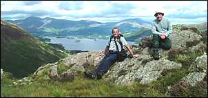 incredible views across Derwent Water. With all the ups and downs we'd done quite a walk. The GPS meter showed a total climb of: 1125m (3690ft) and a total descent of: 1163m (3815ft) Fortunately the weather forecast had been very wrong. |