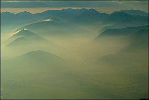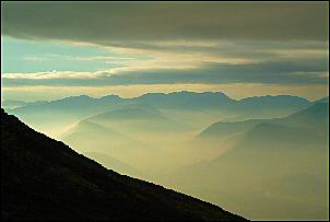 | As we continued up the west slope of Skiddaw the mist rolled up behind us and we seemed to have already witnessed the best part of the day. It was nice to have a view from the Skiddaw summit. A couple were sat there, resting after their climb. | |
