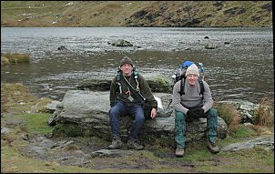 We were on our way before 8am and it hadn't come properly light yet, but by the time we reached the building at Bowscale the light had improved but cloud still hung over the fell tops. The track to Bowscale Tarn continues to be a mystery to me as it is well engineered, follows and even gradient and is wide enough to take a vehicle. But it doesn't seem to serve any purpose other than give easy access to Bowscale Tarn. There is no evidence of quarry or mine working along its route, which is what you'd expect for such a track. It was still only 9am when we arrived at the tarn so we sat awhile and enjoyed our fist coffee of the day. |