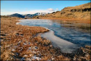 | I headed north towards High Raise but realised I wouldn’t have time to get to the top and make the lecture. So I cut across to Sergeant Man and tried to find the path down to Easedale Tarn. There was no sign of it in the snow but by now walkers were starting to come up from the tarn. So I headed down towards them and soon found the path. It was tricky in places due to lots of ice and many detours had to be made. At Easedale Tarn I stopped for my sandwiches and then had to make a quick descent to the road and back to Grasmere village to make the lecture with minutes to spare. |