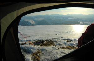 nearby and pitched my tent. The ground was frozen solid and I had to