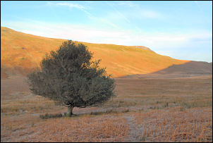 I drove to Lowewater, past the Kirkstile Inn, and on to the bridge over Park Beck. I parked in a lay-bye at the bridge and began to get my stuff ready. I was surprised to see a few schoolchildren walking down the lane, presumably to catch a school bus. I set off south along the lane and past Kirkgate Farm. There was hardly any wind and the weather looked good. The fells above 500m were all covered a snow, though I didn’t know how deep. The tarmac ended at the farm and I was then on stony ground between walls. The track continued higher and when in Mosedale valley the walls were left behind. There were great views all around; Mellbreak to the left, Hen Comb to the right and Gale Fell in the distance. The track is firm and almost flat. After a while it took a turn to the left and started to climb diagonally up Mellbreak. However, in the distance I could see the Mosedale Holly tree, which is quite a way off the track. I set off on a direct line to the tree. According to A. Wainwright’s book ‘The Western Fells’ the tree is the only single tree marked on the Ordnance Survey map that is individually named. |