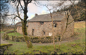 A path took me down into the sheltered valley bottom with flat grassed areas by the river. The path started off narrow and dry but further down some stretches were rather wet. It was an easy and pleasant walk all the way back down to Miterdale Head. I decided to return to Low Place on the opposite bank this time so crossed the river by the log footbridge. It was well made with plenty of rope lashings and wire mesh fixed to aid grip. I had another look at Bakerstead before following the path across fields back to the lower footbridge. It was wet in places but not as muddy as the path I’d come up earlier. At the farm there was still nobody about so I continued along the track and back to the car. |