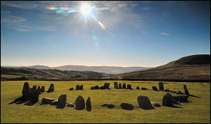 Many years ago I had a walk up to the magnificent stone circle at Swinside near Millom, Cumbria. I thought it was about time to re-visit the site and also take a look over the Black Combe and White Combe areas. I was blessed with a wonderfully sunny morning as I drove to Cumbria. It was clear and cold and the car’s outside temperature sensor showed -1dec C most of the way. Swinside Farm is about a mile up a private track. I left the main A595 road and took the narrow lane which is signposted ‘Fell Road’. Near a gate I found a wide verge and was able to leave the car and set off for the circle. It is a while before it comes into view but when it does it is worth the effort. The circle comprises 55 of the original 60 stones formed into a 90ft circle |