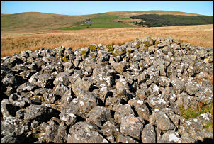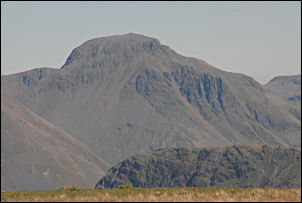 It was a nice sunny drive to the Wastwater area. I’d made good time and arrived at the narrow lane near Nether Wasdale and below Windsor Farm just before 8am. The sky was clear with hardly any wind. I was parked near a cattle grid and each time a car passed by I was nearly deafened by the rattle. I set off up by the river, which doesn’t seem to have a name. The next river to the west does though. A name you couldn’t possibly make up, Turdypack Gill! I met an old stony track and followed between dry stone walls until I came out onto open fell. Keeping the wall to my left I continued round to the left till I crossed a wooden footbridge and a straight lane between tree plantations. On the far horizon was the distinctive profile of Sellafield, which always seems to be there when walking this side of Cumbria. I followed in a dead straight line before turning right and following another straight track towards Brown Edge. The map shows the path running straight down to the River Bleng and up the far bank. Perhaps a right of way exists but no discernable path does. There is no bridge or stepping stones to cross the river so I had to engage in jumping from stone to stone. I was now climbing Stockdale Moor and climbed steadily over rough ground to the pile of stones that the map calls Sampson’s Bratfull and also describes it as a long cairn. |